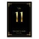 Carte de numéro de table mariage Great Gatsby Art Déco avec numéro 11 doré et texte personnalisable, où vous pouvez ajouter vos noms et date mariage, imprimé sur arrière - plan noir