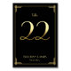Cartes de numéro de table du mariage Great Gatsby Art Déco avec numéro d'or 22 et texte personnalisable, où vous pouvez ajouter vos noms et date de mariage, imprimé sur arrière - plan noir