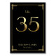 Cartes de numéro de table du mariage Great Gatsby Art Déco avec numéro d'or 35 et texte modifiable, où vous pouvez ajouter vos noms et date de mariage, imprimé sur arrière - plan noir