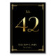 Cartes de numéro de table du mariage Great Gatsby Art Déco avec numéro d'or 42 et texte modifiable, où vous pouvez ajouter vos noms et date de mariage, imprimé sur arrière - plan noir