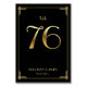 Cartes de numéro de table du mariage Great Gatsby Art Déco avec numéro d'or 76 et texte modifiable, où vous pouvez ajouter vos noms et date de mariage, imprimé sur arrière - plan noir