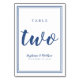 Ce design a été créé pour des célébrations mariages intimes plus petites. Simple, minimaliste et élégant Numéro de table de mariage DEUX design contemporain avec une bordure double en bleu classique sur un arrière - plan blanc immaculé. Le design chic offre une sophistication intemporelle et moderne. Personnalisez la conception de table mariage avec vos détails mariages en lettres bleues sophistiquées et en script. Le dos de la carte est un double de l'avant. Commandez-en une pour chaque table avec les numéros de table individuels. Les tables ONE à TEN sont conçues individuellement et sont disponibles dans mon magasin InvitationSuites sur Zazzle. Bien qu'il soit spécialement conçu pour un lieu plus petit, si vous avez besoin de numéros supplémentaires, envoyez-moi un courriel à InvitationSuites@gmail.com.