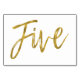 Typographie élégante en or et blanc Numéro de tableau Cinq.