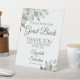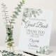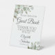 Ce magnifique panneau de piédestal fera invitation vos invités mariages à signer votre livre d'or. Décoré dans un style boho chic rustique avec des sprigs peints à la main de feuilles d'eucalyptus aquarelle dans les tons menthe, mousse et vert sauge. Il y a de la place pour les noms du couple ainsi que la date du mariage.