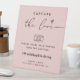 Ce script de calligraphie Capture the Love mariage hashtag signe de piédestal est parfait pour un mariage campagnard. Le design sobre et moderne de couleur rose présente une calligraphie manuscrite à la main unique, avec un style boho minimaliste contemporain. Personnalisable dans n'importe quelle couleur. Gardez le design minimal et simpliste, en l'état, ou personnalisez-le en ajoutant vos propres graphiques et artwork. Personnalisez le panneau avec votre hashtag mariage.