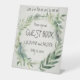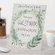 Un panneau amusant rempli de livre d'hôtes avec une bordure vert verdoyante de style aquarelle.