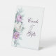 Ce panneau de piédestal mariage lavande-violet présente des pivoines d'aquarelles blanches et violettes, de la lavande, des formes géométriques et de la typographie. Idéal pour un mariage extérieur. Trouvez les articles correspondants dans Lavender Purple Floral Mariage Collection.