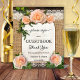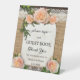 Panneau de piédestal mariage romantique avec roses et feuilles verts sur bois rustique avec burlap et dentelle. Beau pour un jardin ou une grange mariage ou une fête de jardin. Vous trouverez un livre d'or correspondant ici : https://www.zazzle.com/rustic_wood_roses_romantic_wedding_guest_book-256999603104074523
