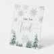 Panneau de nourriture, baby shower d'hiver argenté et panneau de douche nuptiale avec pins et flocons de neige.
