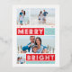 Un design de carte classique parmi les nombreux modèles de cartes de vacances par Origami Prints. Ce design présente une galerie de 4 photos de famille le long de la typographie en papier argenté audacieuse qui dit "Que vos vacances soient joyeuses et brillantes". L'accueil est encadré par des formes de blocs rouge vif et bleu clair avec une bordure blanche classique pour une finition propre.