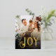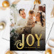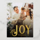 Partagez les voeux les plus chauds de vacances avec une carte postale photo de famille avec le mot joie dans la typographie élégante d'un vrai papier d'or sur une simple couche de photo noire transparente.