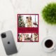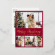Élégante calligraphie Minimaliste Rouge et Or Foil Script 4 Collage photo Joyeux Noël Carte postale. Ce modèle festif, mimimaliste, fantasque quatre (4) cartes de vacances photo présente un joli collage photo. Le texte de salutation "Joyeux Noël" est écrit dans une belle main lettrant le type de police de script de brosse en or sur arrière - plan de couleur rouge bordeaux. À l'envers avec modèle texte de salutation avec un petit coeur gribouillant sur blanc et un modèle photo. Jolie carte de voeux pour votre famille et vos amis pendant la période de Noël.