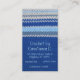 Bandes en crochet simple point travaillé en blanc, gris, bleu clair et bleu foncé. Grande bande bleu foncé au fond, avec des bandes de taille moyenne de gris, bleu clair et bleu foncé au milieu et une ligne simple de crochet dans toutes les couleurs au dessus. Personnalisez avec des informations de contact en texte bleu clair sur couture bleu foncé en motif.
