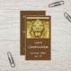 Tête de lion architecturale avec les champs de texte pour le nom commercial et le numéro de téléphone. Back a trois champs pour une ligne de balise, la liste des spécialités et l'adresse. L'avant et l'arrière sont en orientation verticale.