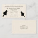 Silhouettes de chat noir. Personnalisez cette carte pour tous ceux qui travaillent avec des chats. En haut est une ligne de balise pour "spécialisation" Le texte central est Nom, Adresse, avec les numéros de téléphone en bas. De chaque côté, dans les coins inférieurs, se trouvent les images d'une silhouette d'un chat. À l'arrière, il y a de l'espace pour le texte pertinent (actuellement heures de bureau) - modifier au besoin.