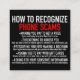 "Si une entreprise vous demande des cartes-cadeaux, c’est une arnaque" Texte pour répandre le mot : faire attention aux appels téléphoniques, car il peut y avoir des escrocs qui essaient de vous voler de l’information ou de l’argent. Les plus courantes sont les escroqueries de soutien technique, les arnaques de l'IRS, les fraudes bancaires et les escroqueries par dettes.
