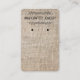 La texture en jute imprimée sur le devant mettra en évidence vos boucles d'oreilles en terre et en saumure. Customisez en changeant le texte "Bijoux artisanaux" en nom ou marque de votre entreprise. Gardez ou supprimez le texte "Fabriqué avec amour" au dos. Passez des trous dans la carte pour accrocher les boucles d'oreilles.