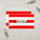 Donnez à votre entreprise portoricaine une impression mémorable avec ce design simple mais audacieux qui montre des rayures rouges et blanches du drapeau portoricain ainsi que la silhouette de la carte Porto Rico au centre et le nom de votre entreprise au-dessus. Ajoutez les informations pertinentes devant et derrière la carte. Si vous préférez avoir les informations supplémentaires sur le devant ou le dos, il vous suffit de supprimer le texte indésirable. / Dale a tu negocio puertorriqueño una impresión mémorable con este simple pero impactante maladie ño alusivo a las franjas de la bandera de Porto Rico junto con la silueta de la Isla y el nombre de tu empresa sobre esta. Añade la información en cualquiera de los lados de la tarjeta. Si prefieres tener la información solamente al frente o atrás simplemente borra el texto del lado no deseado.