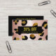 Glamor animalier carte de réseautage girly ou coupon avec image numérique de noir et parties scintillant or empreinte de léopard sur un fond d'or rose faux métallique. Superposition à bande noire. Idéal pour les professionnels de la beauté, de la mode, du divertissement et des événements. Remarque : Séquin et métallique sont des effets imprimés, aucune parties scintillant sur la carte. Idéal pour les salons de beauté, les spas, les cosmétiques, les esthéticiens, les studios de danse, les boutiques, les designers, les stylistes de cheveux et de mode ou tout autre professionnel de l'image. Idéal pour l'artiste ongle, le barbier, les boutiques de cadeaux et plus encore