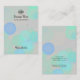 Cette carte est l'étalage parfait pour présenter vos bijoux, boucles d'oreilles et colliers. La conception de la carte produit comporte des bulles bleues et turquoise sur une couleur arrière - plan gris moderne, et inclut votre logo personnalisé ainsi que d'autres informations de contact personnalisées avec votre site Web et votre e-mail sur le côté arrière. Veuillez noter que les points sont imprimés et ne sont pas des trous précoupés.