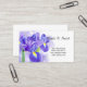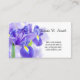 Cette carte de visite est présentée dans un blanc classique de base avec une photo d'iris violets. Customisez cette carte, changez le texte à votre place. Image sous licence