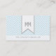 Un arrière - plan motif de zag bleu avec un étiquette à droite écrit un nom de modèle et des informations d'adresse, qui peuvent être facilement changés par votre propre texte, nom, monogramme ou balises. Le dos contient vos monogrammes et votre adresse Web.