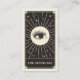 Ce carte de visite est décoré dans un style de carte tarot dans une palette de couleurs noir et crème. Au verso, il y a de l'espace pour des détails sur la façon de prendre soin des cils après un traitement. L'illustration montre un oeil mystique avec de longues cils entourés d'étoiles scintillantes. Ce serait parfait pour n'importe quel esthéticien, salon ou spécialiste de la fouille qui préfère un carte de visite de style alternatif et veut rendre leur carte de post-prise en charge fouettée mémorable.