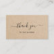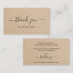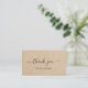 Elégante commande insérer des cartes avec "merci pour votre achat" avec des swashes dans une police manuscrite sur un arrière - plan de papier brun rustique. Le côté arrière contient votre message personnel ou votre code de réduction pour une commande future. Ce design simple et féminin est idéal pour une entreprise artisanale artisanale.