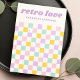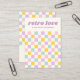 Carte d'affichage de bijoux avec un motif de damier rose clair, jaune, violet et bleu aqua et votre nom de société ou de conception dans un style rétro, police violet. Toutes les couleurs sont personnalisables. Montrez vos boucles d'oreilles avec style grâce à ces cartes d'oreille d'inspiration rétro avec un motif en damier pastel. Personnalisables avec votre nom de magasin et vos détails, ils sont parfaits pour les petites bijouteries