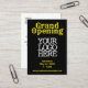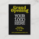 Le design comporte une grande typographie jaune sur arrière - plan noir, conçu pour attirer l'attention et il est facile à lire. Téléchargez le logo de l'entreprise et mettez à jour les informations sur la date et l'heure d'ouverture, ainsi que le site Web de votre entreprise ou toute information supplémentaire que vous souhaiteriez partager avec vos clients. Bravo! et Félicitations pour votre nouvelle aventure!
