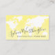 Carte du monde jaune vif et joyeuse sur un carte de visite élégant, minimal et moderne pour un agent de voyage, blogueur de voyage, propriétaire de maison de vacances ou planificateur de mariage de destination. Toutes les couleurs et les polices peuvent être changées pour correspondre aux couleurs de votre marque de petite entreprise.
