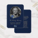 Cartes de mémoire florale bleu et or personnalisées/cartes de prières funéraires avec cadre photo doré orné de roses bleus et de verdure.