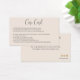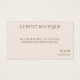 Ajoutez cette carte de boîtier avec tous vos emballages de vêtements. Vos clients seront informés des meilleures pratiques à suivre dans le soin de leur nouvel article. Il montre également que vous êtes fier de ce que vous vendez et que vous voulez que le client soit heureux. L'information est modifiable pour votre ligne de vêtements. Utilisez le texte de l'exemple comme ligne directrice pour la longueur. Au verso, vous ajouterez le nom de votre boutique ou magasin ainsi qu'un mot de remerciement personnel. Il y a trois icônes de médias sociaux sur la carte, encourageant le client à se connecter avec vous sur différents canaux. Si vous préférez d'autres personnes, contactez le concepteur qui peut ajouter celles que vous utilisez. Ajoutez le nom du magasin que vous utilisez si différent du nom de votre entreprise. Si vous avez besoin d'aide pour personnaliser cette page, contactez le concepteur, qui peut vous aider. Nous recommandons toutes les lettres majuscules lorsqu'elles ont été utilisées sur cette carte.