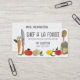 Fruits, légumes, huile d'olive, couteau de chef et cuillère en bois cartes de visite pour des cours de cuisine, chef personnel, traiteur ou traiteur, ou d'autres aliments gastronomiques ou d'affaires culinaires. Carotte, tomate, oignon, pois de pois, citron, pomme à l'aquarelle sur un arrière - plan clair. Il a l'air plutôt bien sur un arrière - plan noir.