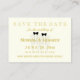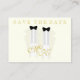Une paire amusante et décalée de tuxedos ivoire/crème avec des cravates d'arc noir et des chemises mariages blanches. Le lettrage est un mélange de polices de couleur or (ish). Une façon d'envoyer vos cartes Enregistrer la date avec effet de coût.