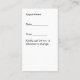 Moderne et abordable Eye Doctor patient Rappel de rendez-vous cartes de visite dans un modèle design en ligne élégant et tendance unique que vous pouvez customiser. Créé avec un graphisme élégant en lunettes, vous pouvez utiliser sur nos cartes avec une mise en page de carte de visite classis avec un modèle de rendez-vous au dos vous aidant à utiliser les deux côtés et vous épargnant d'avoir deux factures cartes de visite. Oeuvre pour un dentiste, un orthodontiste, un chirurgien buccal, un médecin d'ophtalmologie ou un optométriste.