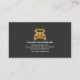Le logo doré est en haut, sur une couverture grise, suivi de votre nom prestigieux, des coordonnées et d'un slogan pour annoncer vos services.