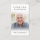 Funérailles Pour Toujours Dans Notre Coeur Carte De Prière Photo. Gardez la mémoire d'un être cher proche avec cette carte de prière personnalisée avec une photo chère, le titre FOREVER IN NOS COEURS, le nom et les dates et un message de souvenir chaleureux modifiable. Avec son design classique simple mais élégant, noir et blanc et sa calligraphie élégante, il fait un souvenir significatif à partager à un enterrement, service commémoratif ou Célébration de la Vie et offre le confort et un hommage durable pour la famille et les amis. Sa petite taille portable de 3,5x2" (taille porte-monnaie) permet aux proches de la porter avec eux pour rappeler la vie et l’esprit de l’être aimé. La personnalisation rend chaque carte unique.