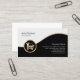 Ce carte de visite répare automatiquement les segments noirs et blancs séparés par une bande d'or ondulée. Une élégante icône en or d'une voiture et d'une clé se trouve sur le côté inférieur gauche de la conception, qui est généralement adapté aux entreprises ou professions liées au transport, transport, transport, fret, camion, camion, voiture, automobile, mécanique, réparation automobile.