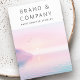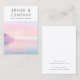 Carte d'oreille moderne et minimale avec lever de soleil doux et pastel avec une falaise et deux oiseaux.