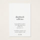 Une carte de visite professionnelle qui vous permettra de présenter vos colliers dans une boutique, un salon artisanal ou un salon professionnel. Vous personnaliserez avec votre logo d'entreprise. Il a été conçu pour permettre au collier de s'accrocher sous votre logo, en veillant à ce que les deux soient clairement visibles. Deux lignes directrices sont en haut, montrant les zones recommandées pour vous à couper. Nous recommandons un couteau artisanal pour cette tâche. Il y a une zone sur le devant pour le texte en bas. Utilisez notre texte comme guide. Au contraire, vous ajouterez un message personnel et des informations commerciales. Le concepteur a inclus deux icônes de médias sociaux. Vous pouvez en ajouter d'autres si nécessaire. Contactez le concepteur avec vos exigences et elles seront ajoutées pour vous. Ce design simple permet à vos bijoux d'être exposés de manière élégante tout en fournissant des informations importantes qui feront la promotion de votre client pour devenir votre prochain client de retour.