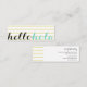 Choose this business card for your language services. If you labourez an interpreter, translator, English teacher, Spanish teacher, with professional multilingual a proficiency in the use of languages several, select this business card to introduce yourself to your clients, customers, students or colleagues. « Hello » mai voit change for other greetings in other languages. Very minimalist, modern with horizontal blue lines and with à very look professional. Customize it !