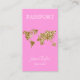 Passeport Travel Agency Parties scintillant Gold World Map Pass Carte de visite avec arrière - plan rose pour maquillage, agrandissement, planificateur d'événements, agent de voyage, coiffeur, artiste de ongles