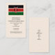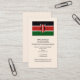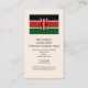 Carte de visite patriotique moderne KENYAN FLAG, montrant la conception combinée de la carte contour et le drapeau de KENYA. L'image du drapeau est PERSONNALISABLE pour que vous puissiez la remplacer par votre propre photo ou logo, et personnaliser avec votre nom et vos coordonnées. Au verso, vous avez la possibilité d'ajouter votre propre texte ou de supprimer.