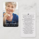 Carte funéraire simple. Ajoutez votre photo de fond, script et typographie classique préférée est utilisé. Au verso de la carte se trouve un dicton qui peut être customisé.