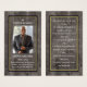 Souvenez-vous de votre être cher avec cet élégant hommage. Leur photo est placée au centre de l'avant. En mémoire d'amour est écrit ci-dessus et leur nom et dates de vie sont ci-dessous. Trois lignes de texte vous permettent de personnaliser un hommage unique. Il y a de la place sur le dos pour une prière ou un psaume préféré, un poème ou un souvenir spécial. Les côtés avant et arrière sont encadrés d'un cadre doré.