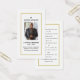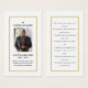 Souvenez-vous de votre être cher avec cet élégant hommage. Leur photo est placée au centre de l'avant. En mémoire d'amour est écrit ci-dessus et leur nom et dates de vie sont ci-dessous. Trois lignes de texte vous permettent de personnaliser un hommage unique. Il y a de la place sur le dos pour une prière ou un psaume préféré, un poème ou un souvenir spécial. Les côtés avant et arrière sont encadrés d'un cadre doré.