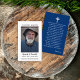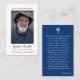 Carte de prière funéraire simple. Ajoutez votre photo préférée, script, et typographie classique est utilisé. Sur le dos de la carte se trouve la prière qui peut être customisée sur un arrière - plan bleu.