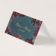 Cartes de table d'hôtes en style tente avec le design Turquoise Bordeaux Jewel Tone Tone avec des graphismes sur les deux côtés, une fenêtre d'insertion vierge pour écrire leurs noms et numéro de table, avec vos noms en couleur or sur le dos.