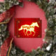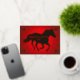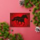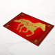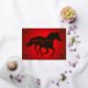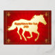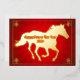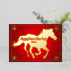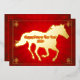 Notre carte à huile pour le Nouvel An chinois de course de chevaux montre le contour de feuille d'or d'un cheval dressé contre un arrière - plan de coup de soleil rouge et entouré d'une bordure d'or. Tous les textes sont personnalisables, ce qui fait de cette conception de carte unique un gardien pour les années à venir.